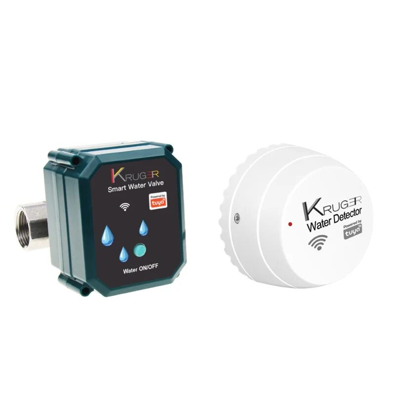 Robinet smart WI-FI pentru oprire alimentare apa + Senzor smart Kruger, detectie scurgeri de apa (WI-FI TUYA), este set inteligent conceput pentru controlul automat al apei.